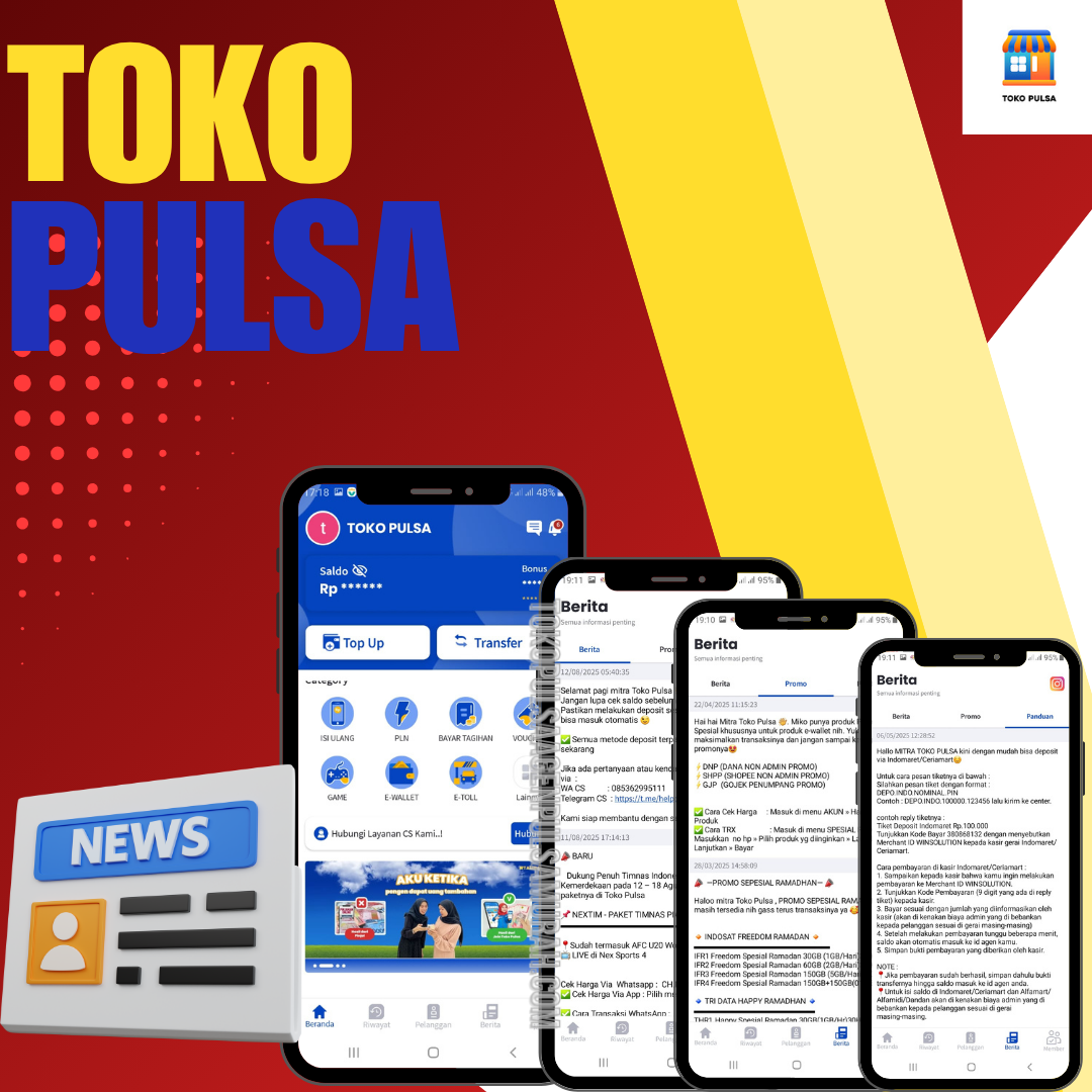 Aplikasi Toko Pulsa Menyediakan layanan pengisian pulsa, kuota, token, PPOB dan lainnya Termurah & Terlengkap. Bergabung sebagai agen pulsa di Toko Pulsa dan nikmati kemudahan dalam melakukan transaksi serta mendapatkan keuntungan tambahan.