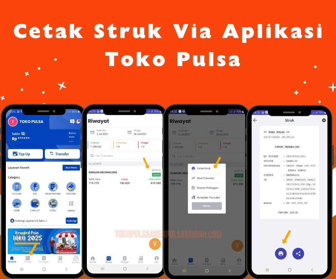 5.Akan muncul struk yang Anda butuhkan silakan cetak dengan printer Anda Baca juga: Cara Setting Link Referral & Kode Referral Toko Pulsa